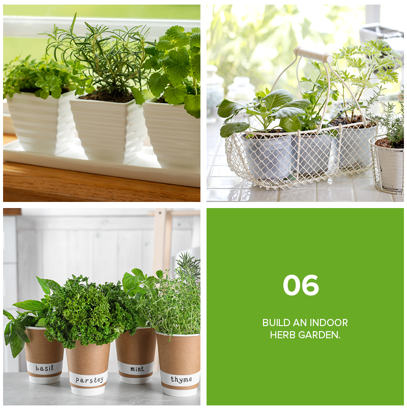 Bring the pleasure of cooking with fresh herbs straight to your kitchen by growing your own indoor garden. The beauty of this is, even if you have limited outdoor space or have no room for a vegetable garden, you can incorporate plant decor while filling your home with the calming and fresh-smelling scents of herbs. Try planting basil, rosemary, mint, parsley, and thyme in small pots or even mason jars, and then mount them on black wooden boards that you can lean against your kitchen cabinets. You can also use individual planters that will add another pattern to your kitchen wall. This way, your plants will not only serve as cooking aides but also as wall art. Plus, those herbs mentioned above are just some of your best choices for your indoor garden since they don't grow too wide or tall.