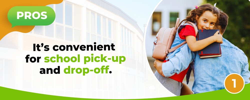 School drop-off and pick-up can get chaotic and dreadful. The line of cars moves slowly, wasting so much of your time, especially during mornings. Just as you'd factor in a work commute, if you have children, you should also consider how long the car line will take when dropping them off at school. While the school bus can also be a convenient option, it may mean that your kids need to get ready early so they won’t miss it. Living close to their school means you can skip the drive and just walk, getting that much-needed exercise as a huge bonus. Your mornings will be easier and faster, and your kids can get home quickly after a school day.